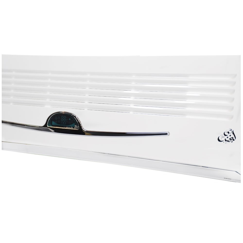 پنل داخلی کولر گازی 30000 جنرال شکار رنگ سفیدی داره که با هر دکوری خوب جور میشه. روی بدنه یه طرح استیل لبخندی زده شده که واقعاً ظاهر شیکی بهش میده، و وسطش یه نمایشگر LED قرار داره که وضعیت دستگاه رو بهتون نشون میده. لوگوی Shkar General هم یهطرف بدنه جا خوش کرده که از اینجا تا حدودی میشه فهمید محصول اصلیه یا نه. یونیت داخلی رو با قطعاتی که توی جعبه میاد میشه راحت روی دیوار نصب کرد. یه دمپر چهارجهته هم داره که باد رو بههمه جهات پخش میکنه و هیچ نقطهای از اتاق بینصیب نمیمونه.