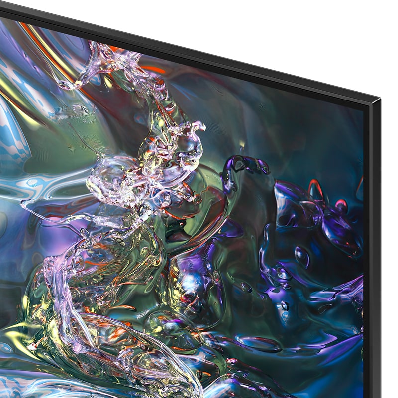 تلویزیون 55 اینچ سامسونگ Q60D با ضخامت 2.57 سانتیمتر، ظاهری باریک و مدرن دارد که به راحتی با دکوراسیون هر فضایی هماهنگ میشود. حاشیههای نازک سه طرف صفحه نمایش (3 Bezel-less) باعث میشوند توجه شما بیشتر به محتوا جلب شود و تجربه تماشای بدون حواسپرتی داشته باشید.