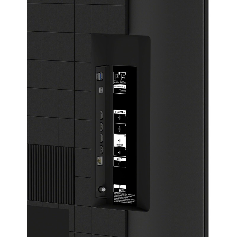 پورتهای متنوع این محصول شامل 4 پورت HDMI 2.0، 2 پورت USB (یکی 3.0 و دیگری 2.0)، پورت اپتیکال برای خروجی صدای دیجیتال و پورت LAN برای اتصال سیمی به اینترنت است. پورت RF برای اتصال آنتن دیجیتال نیز در دسترس است. نقاط برجسته Tactile Dots کنار پورتهای HDMI برای افراد نابینا و کمبین تعبیه شده که نشان از توجه سونی به جزئیات و نیازهای همه کاربران دارد. گیرههای مدیریت کابل نیز برای نظم بهتر در اتصالات فراهم شدهاند. امکان اتصال انواع دستگاهها از قبیل کنسول بازی، پخشکننده Blu-ray، ساندبار و دیگر تجهیزات به راحتی فراهم است و کاربران میتوانند از همه امکانات استفاده کنند.