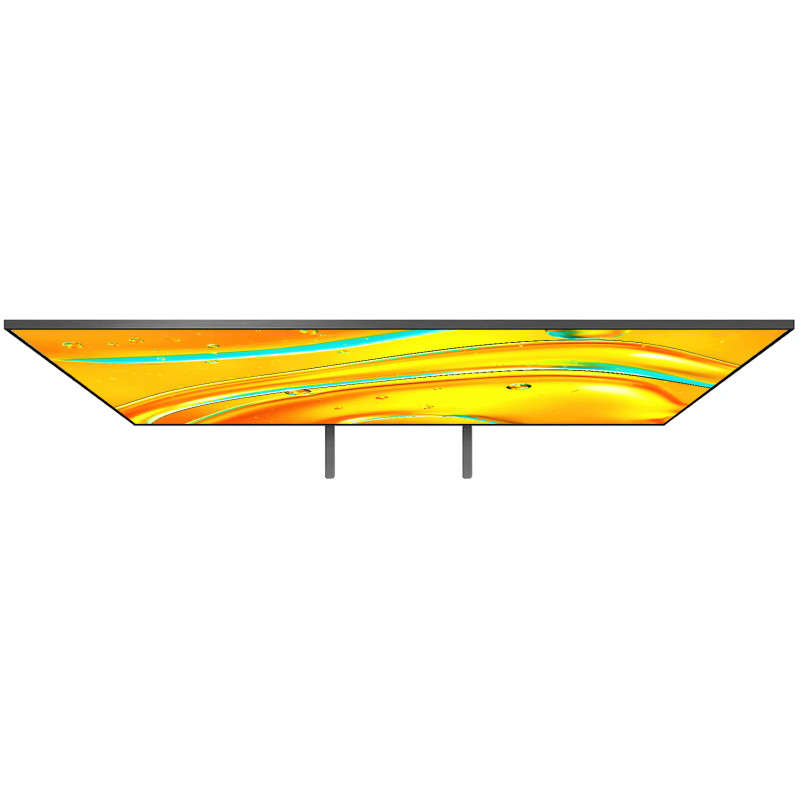 از لحاظ ظاهری،تلویزیون Mini LED سونی 55XR50 فریمی بسیار نازک دارد و بدنهای صاف و شیک از جنس پلاستیک بازیافتی. سونی این طراحی را "Flush Surface" مینامد که به معنی یکپارچگی قاب و صفحهنمایش است. پایههای فلزی آن میتوانند در دو حالت تنظیم شوند: حالت استاندارد برای قرارگیری عادی و حالت ساندبار برای کسانی که قصد دارند ساندبار جلوی تلویزیون بگذارند. با ضخامتی حدود 5.7 سانتیمتر، این تلویزیون کاملاً نازک است و میتوانید آن را بدون مشکل روی دیوار نصب کنید. جنس قطعات و مواد استفادهشده نشاندهنده توجه سونی به جزئیات و دوامپذیری است.